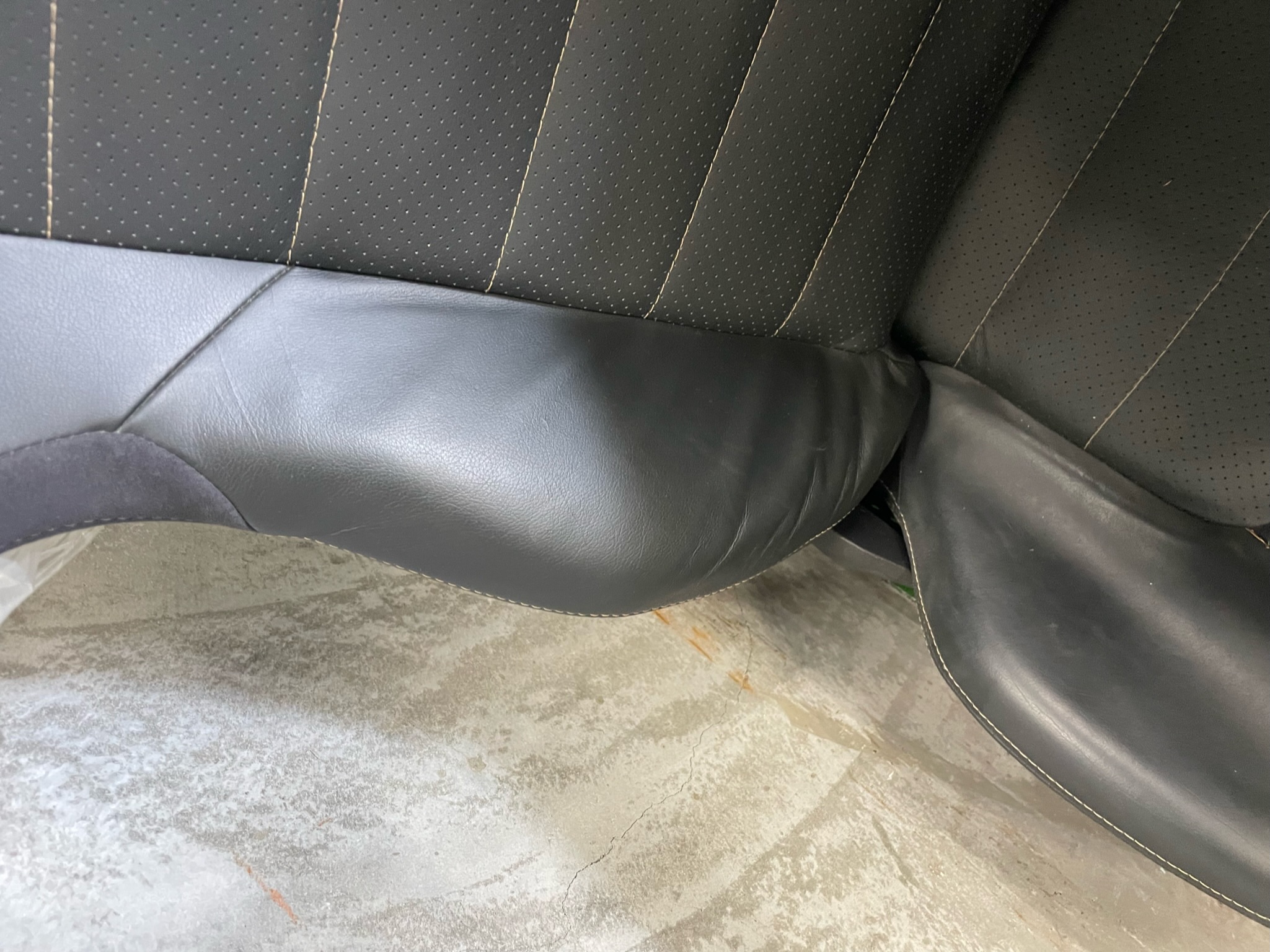 まず、シートに汚れを落とすスプレーを振り掛け、ブラシでなじませます。